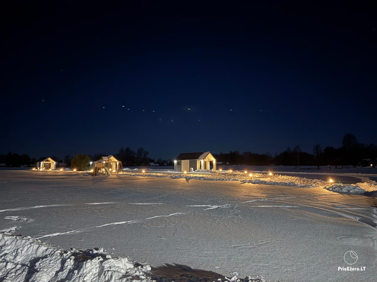 Für Ihre Wahl bieten wir: Ferienhütten (für 4 Personen, für 5 Personen), Plätze für Zelte (). Auch das ganze Gehöft ist zu vermieten, das hat bis zu 16 Plätze zum Übernachten.