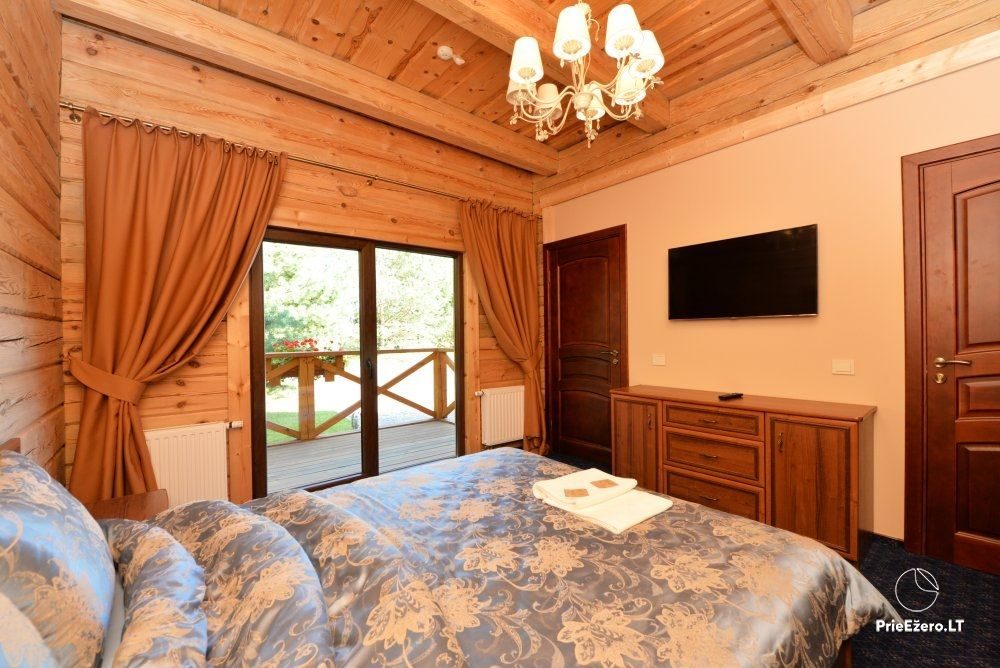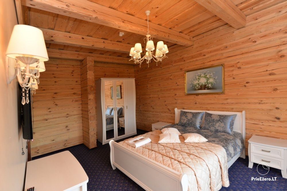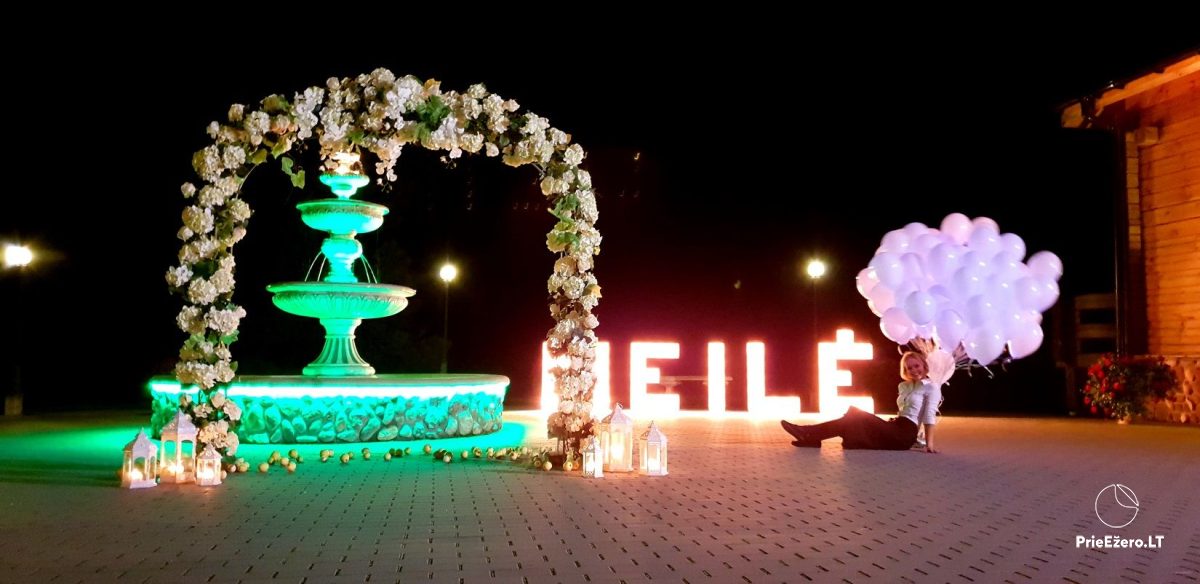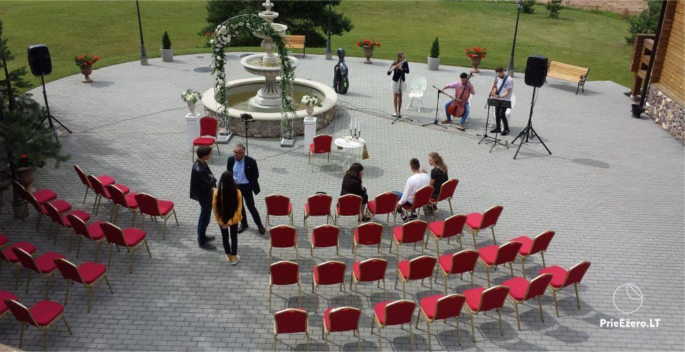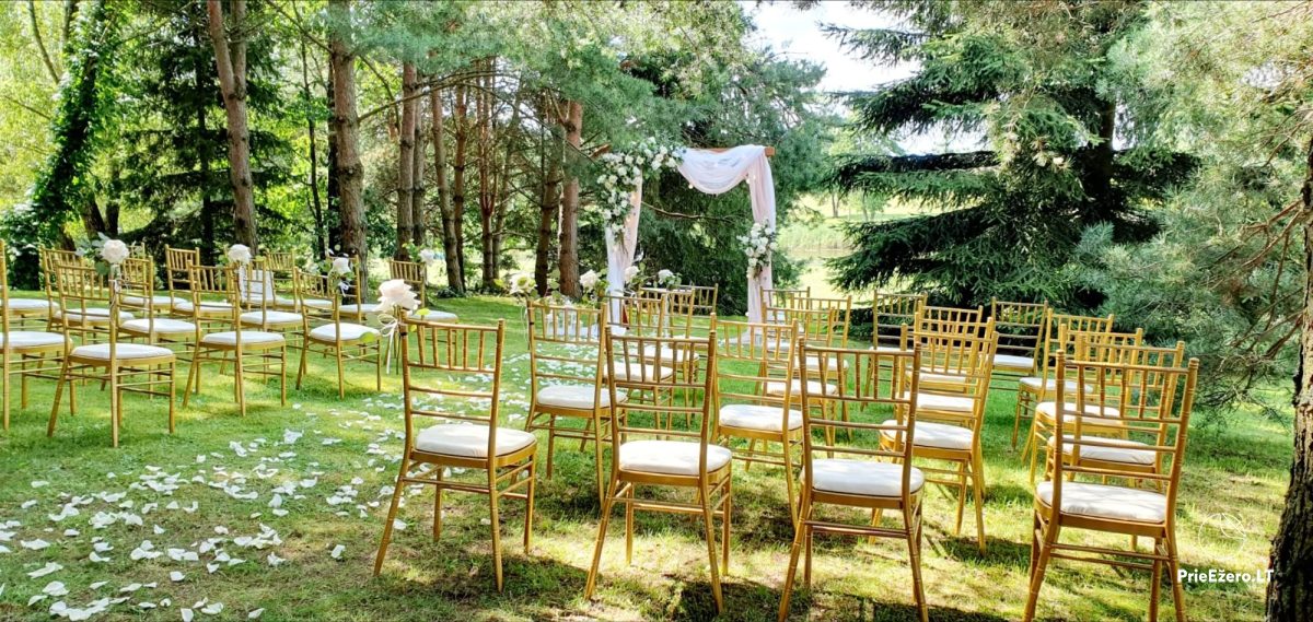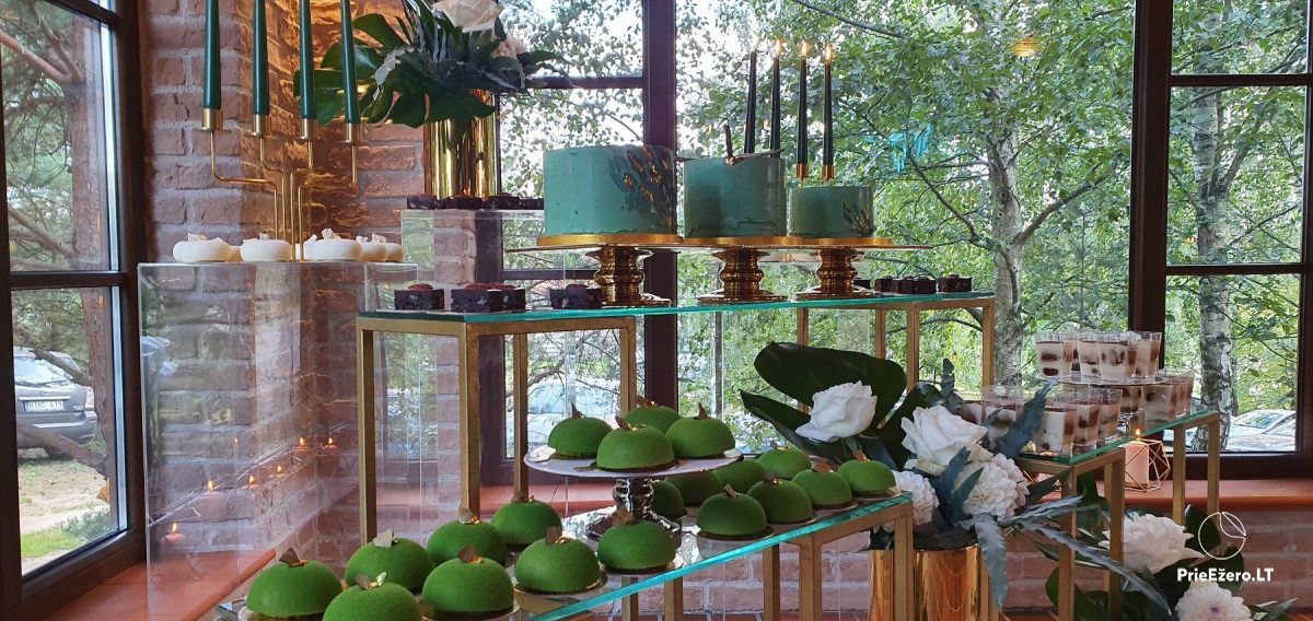 "Dvaro sodyba" offers a luxurious 70-seat banquet hall. We can additionally build a pavilion in the yard. There is a picturesque landscape and many entertainments: billiards, dance hall, sauna, Jacuzzi with tropical rain, terrace, fireplaces, degustations in a Gothic-style wine cellar, exclusive surroundings for photo sessions.