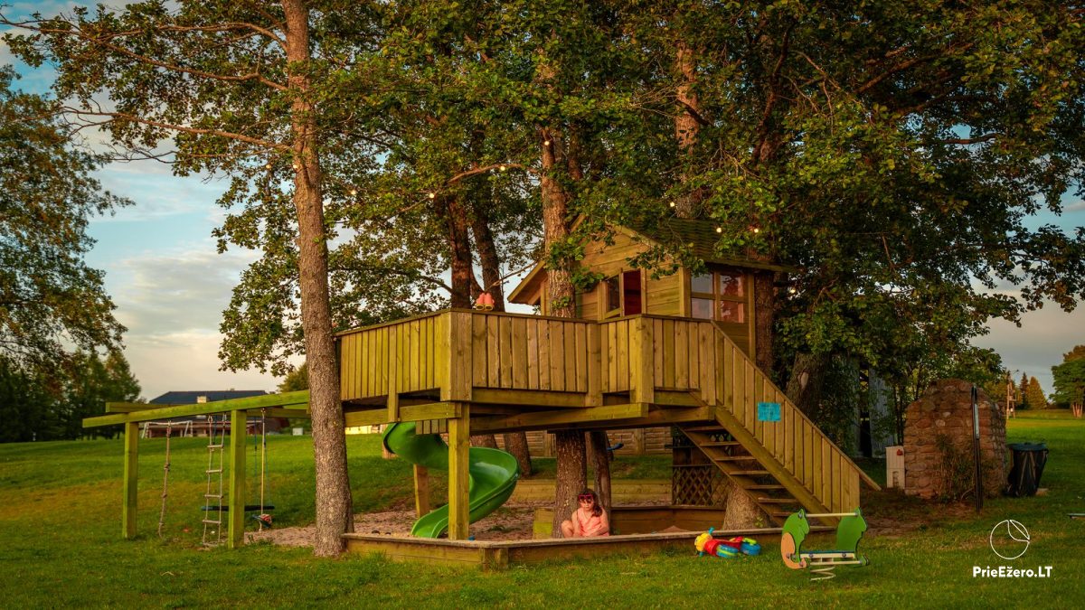 Для детей предлагаем играть на детской площадке, наслаждаться качелями, прыгать на батуте, играть в настольные игры.
