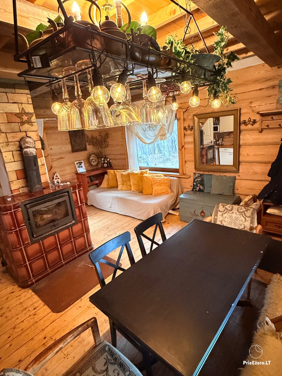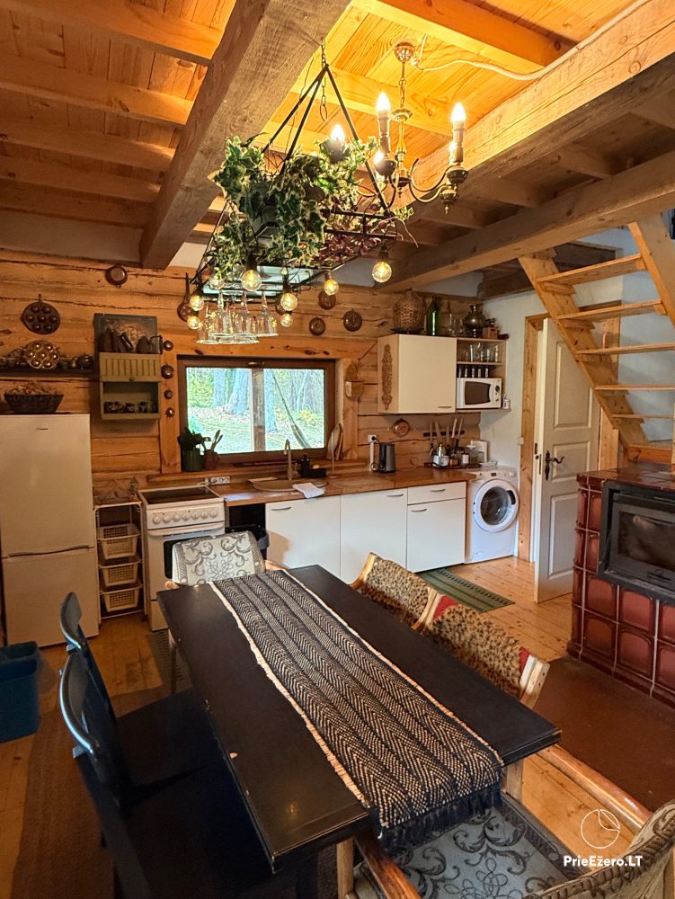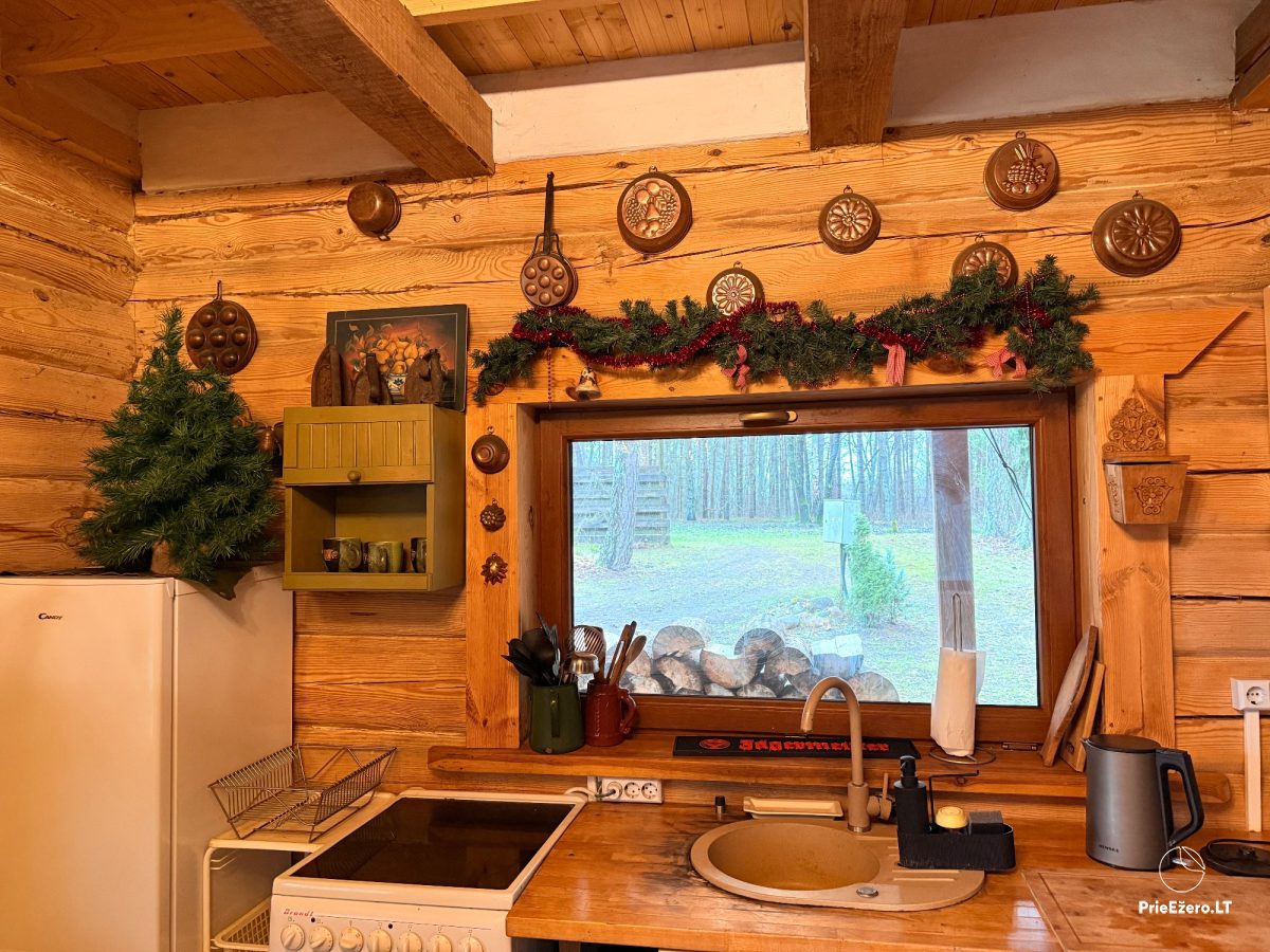 Купель в лесу между коттеджем и берегом.